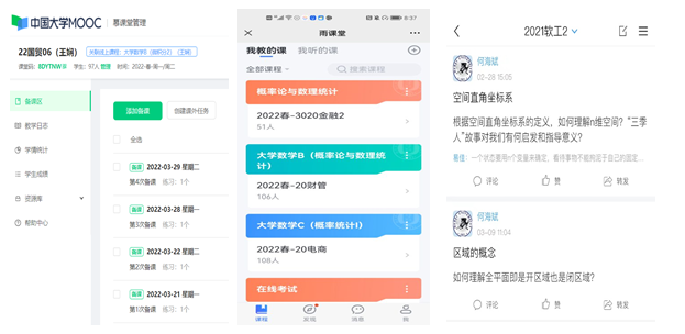 為保障線上教學不受網絡等原因影響,使授課過程達到最佳效果,并充分結合課程特點、授課需要,大數部各教研室通過不斷實踐摸索,總結出了適合課程組需要的授課模式。如:微積分課程組采用自有慕課+直播混合式教學模式、高等數學教研組采用自建課程+直播混合式教學模式、概率論與數理統計課程組采用雨課堂+QQ群直播混合教學模式,線性代數課程組采用學習通+內嵌騰訊會議混合教學模式。
