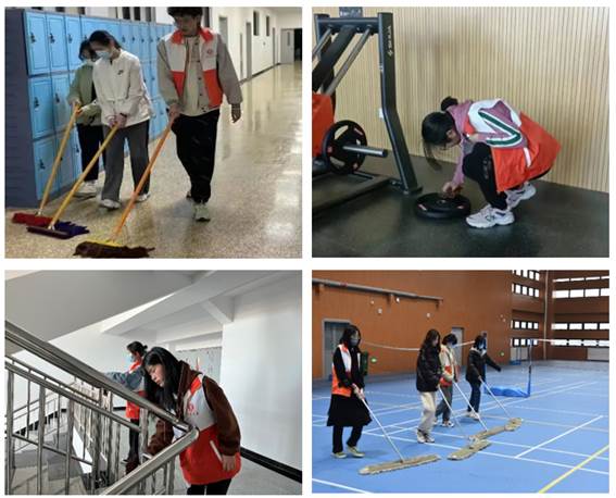 體育教學部在以體育人的同時,注重體育與勞動教育相結合,加強學生體育勞動教育。體育教學部教師與管理學院師生合作組織每周進行“同心抗疫、衛生校園”活動,對七一路校區新體育館進行衛生大掃除,美化環境的同時也讓學生們感受勞動的快樂。