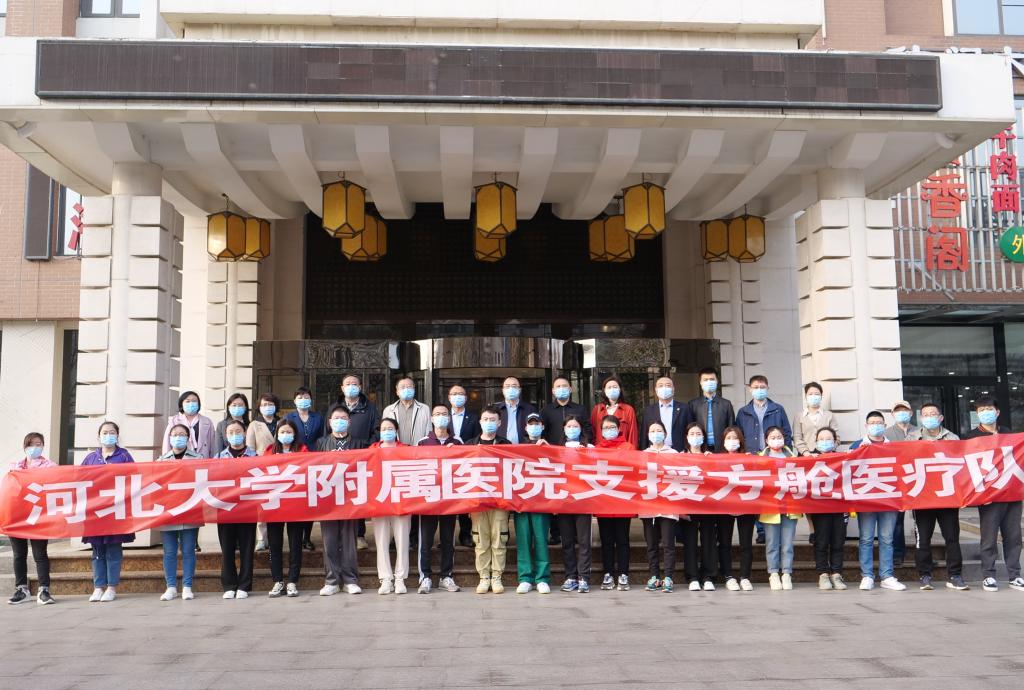 4月9日早7時,河北大學附屬醫(yī)院支援保定市方艙醫(yī)院醫(yī)療隊登車啟程,進駐開展醫(yī)療救治工作。河北大學附屬醫(yī)院黨委副書記、院長程樹杰等院領(lǐng)導為醫(yī)療隊送行。
