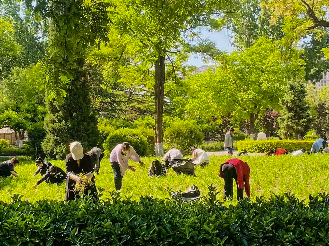在春光明媚的毓秀園,千余名師生錯(cuò)時(shí)錯(cuò)峰,在30余塊勞動(dòng)責(zé)任區(qū)里除雜草、撿枯枝、清雜物,感受勞動(dòng)帶來的樂趣的同時(shí),更加深了對(duì)勞動(dòng)教育的理解——?jiǎng)趧?dòng)教育并不是簡單教人干活,其深層次目的是人格的培養(yǎng),鍛造不懼勞累的精神和堅(jiān)持不懈、有始有終的毅力。
