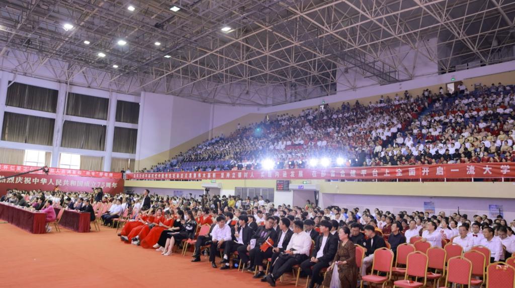 禮贊新中國,奮進新時代。9月26日,我校在五四路校區多功能館隆重舉辦慶祝中華人民共和國成立75周年教職工合唱比賽。全校各單位教職工代表歡聚一堂,謳歌新中國成立75年波瀾壯闊的光輝歷程,唱響河大師生愛黨愛國的熾熱情懷,抒發為強國建設、民族復興貢獻河大力量,向著一流高水平大學闊步前行的壯志豪情。校領導郭健、申世剛、陳紅軍、單耀軍、胡力軍、梁巍、張揚建出席活動。