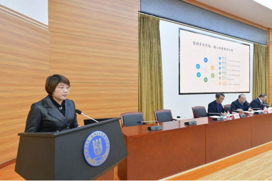 會(huì)議專(zhuān)題表彰了2021年課程思政示范教學(xué)案例(設(shè)計(jì))獲獎(jiǎng)教師、第二屆教師教學(xué)創(chuàng)新大賽獲獎(jiǎng)單位和個(gè)人。