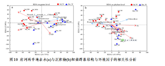 團隊王亞利、劉玲博士采用16S rRNA基因測序研究白洋淀的微生物分布特點。結果表明,地表水的一些環境因子(氨氮(NH3-N)、總氮(TN)、總磷(TP)在時空尺度上存在差異。此外,TN、TP、總有機碳(TOC)或重金屬在沉積物中無明顯的季節差異。藍藻、放線菌和厚壁菌門在水中的分布和放線菌、板霉菌在沉積物中的分布存在顯著季節間差異(P < 0.05)。上游水體的細菌存在顯著的空間差異,其中變形菌門(Proteobacteria)的豐度最高。PICRUSt代謝推斷分析顯示夏季高溫對酶作用的影響導致河流微生物代謝相關基因豐度的增加。研究成果發表在本領域期刊Journal of Environmental Science(中科院二區TOP,IF=7.963)。