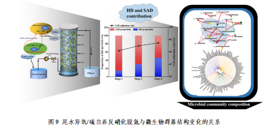 團隊青年教師劉玲博士建立了復合式異養/硫自養反硝化生物濾池(HSAD)反應體系,并應用于城市尾水中氮的深度脫除。相關網絡分析表明,優勢菌之間存在正相關或負相關關系,但在混合營養條件下微生物群落結構形成了穩定的共存狀態。該研究成果揭示了城市尾水中微生物群落結構的變化與生物脫氮過程的內在聯系,深化了對異氧/硫自養反硝化脫氮過程的認識。在微生物驅動的氮、碳、硫元素循環領域取得的研究成果發表在本領域期刊Science of the Total Environment(中科院二區TOP,IF=7.963)。